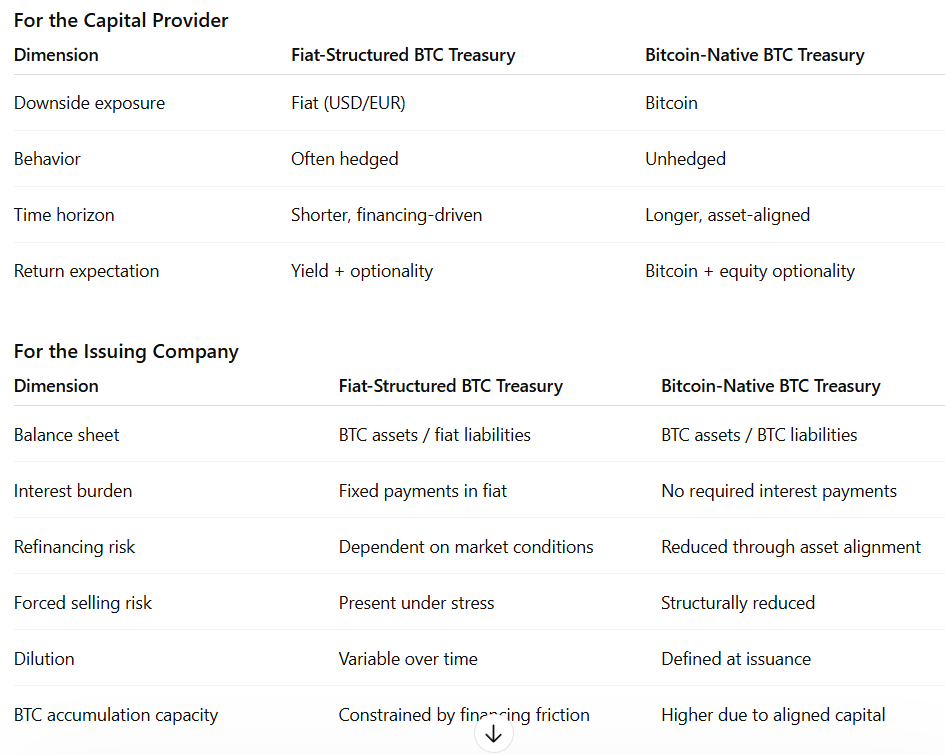 Capital B represents one version of this approach. The company’s innovation was to raise capital through instruments denominated in Bitcoin to acquire Bitcoin. Its convertible bonds can be subscribed in fiat or Bitcoin, but the obligation itself is defined in Bitcoin terms.